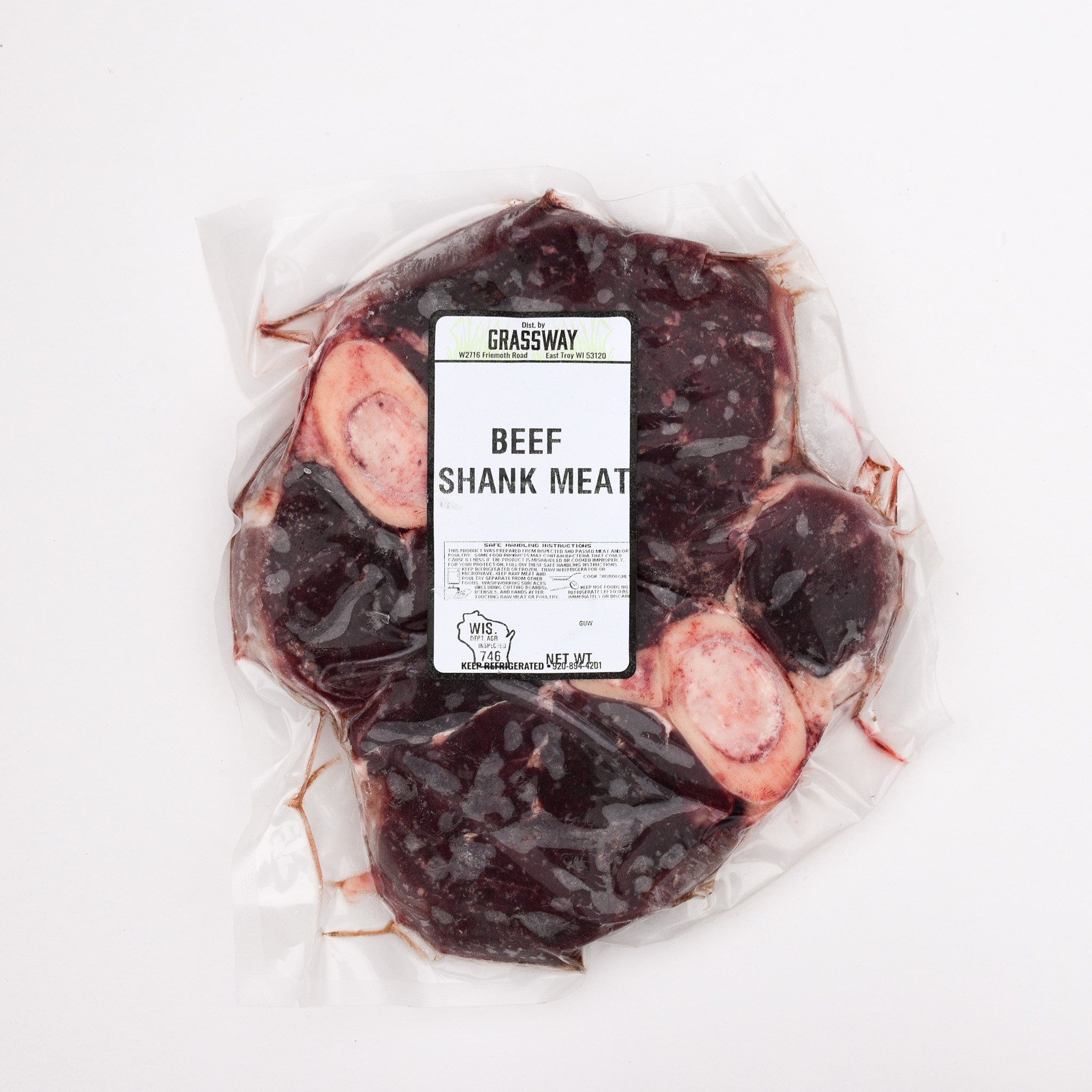 Beef shanks are a cut that have a section of leg bone, along with the meat that surrounds the bone.